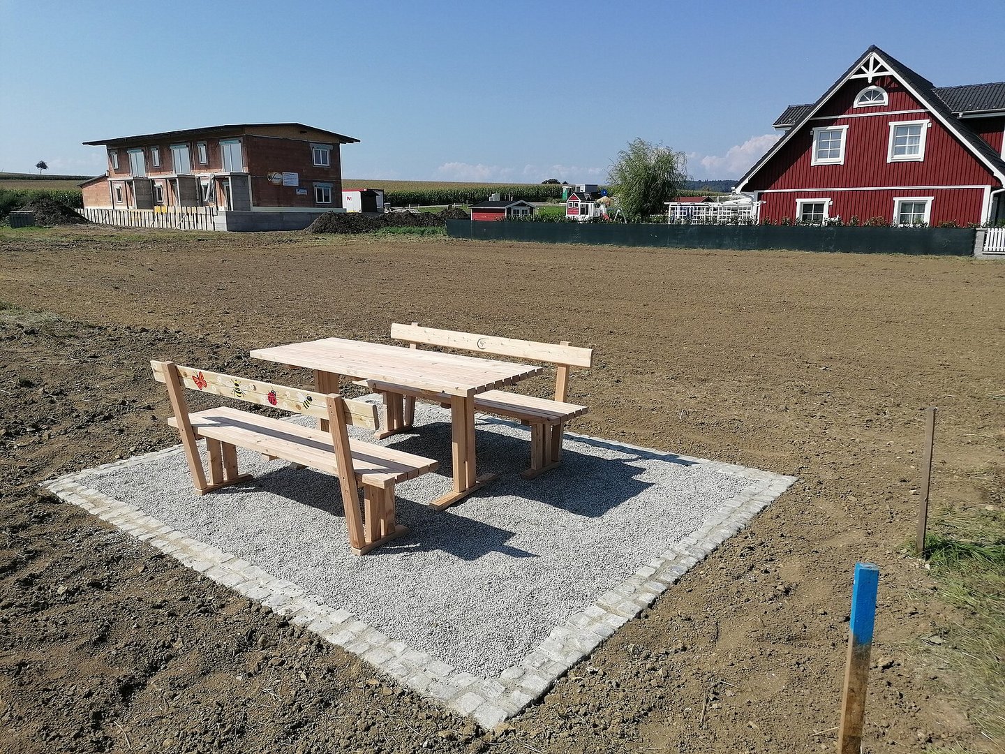 Die Teams "Insektenhotel" und "Blumenwiese" helfen jetzt zusammen, um die Insektenhotels mit den gesammelten Materialien zu befüllen - das dauert ganz schön lange. Die Sitzgelegenheiten für das Platzerl neben der Blumenwiese wurden bereits fertiggestellt und werden noch mit einem Landjugendlogo versehen.